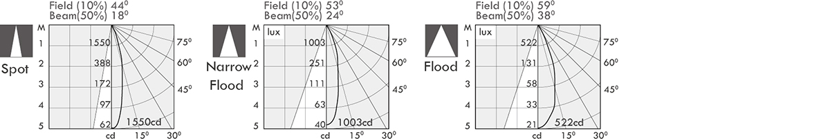 • Off-axis steering design, the maximum inclination angle 35° without damaging light effects.