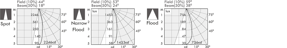 Luminaire flux (lm) | Power consumption (w) | LED drive (w) | cd / 18o | 24o | 38o |