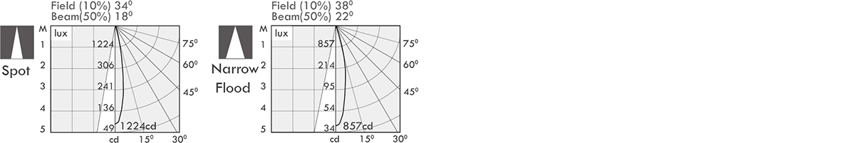 | Luminaire flux (lm) | Power consumption (w) | LED drive (w) | cd / 18o | 22o |