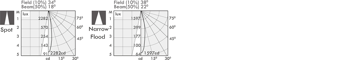 | Luminaire flux (lm) | Power consumption (w) | LED drive (w) | cd / 18o | 22o |