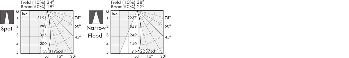 | Luminaire flux (lm) | Power consumption (w) | LED drive (w) | cd / 18o | 22o |
