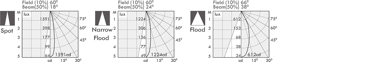 Luminaire flux (lm) Power consumption (w) LED drive (w) cd / 18o 24o 38o
