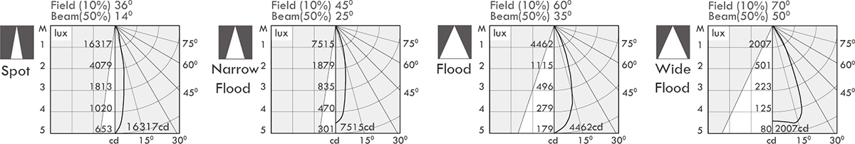 Luminaire flux (lm) Power consumption (w) LED drive (w) cd / 14o 25o 35o 50o