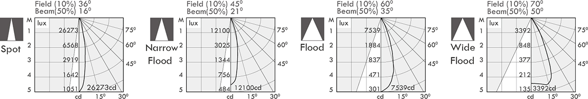 Luminaire flux (lm) Power consumption (w) LED drive (w) cd / 16o 21o 35o 50o