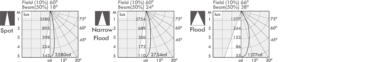 Luminaire flux (lm) Power consumption (w) LED drive (w) cd / 18o 24o 38o