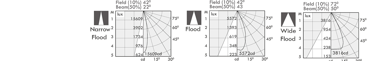 | Luminaire flux (lm) | Power consumption (w) | LED drive (w) | cd / 22o | 43o | 50o |
