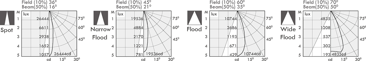 Luminaire flux (lm) Power consumption (w) LED drive (w) cd / 16o 21o 35o 50o
