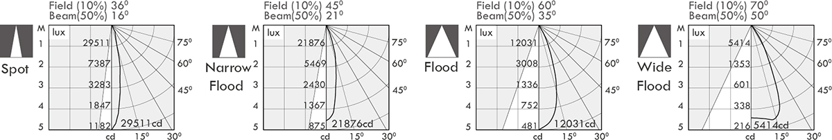 Luminaire flux (lm) Power consumption (w) LED drive (w) cd / 16o 21o 35o 50o