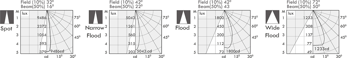Luminaire flux (lm) Power consumption (w) LED drive (w) cd / 16o 22o 43o 50o