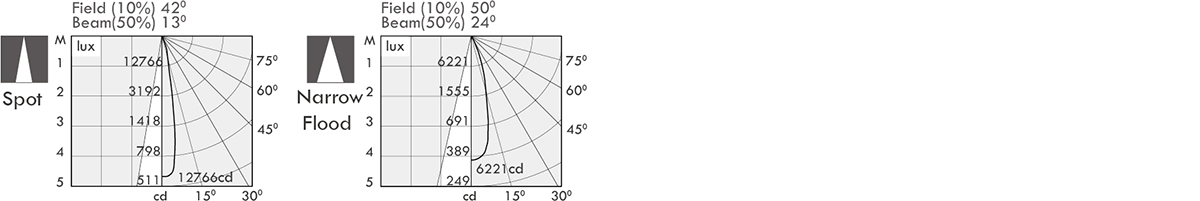| Luminaire flux (lm) | Power consumption (w) | LED drive (w) | cd / 13o | 24o |