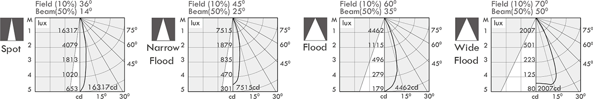 Luminaire flux (lm) Power consumption (w) LED drive (w) cd / 14o 25o 35o 50o