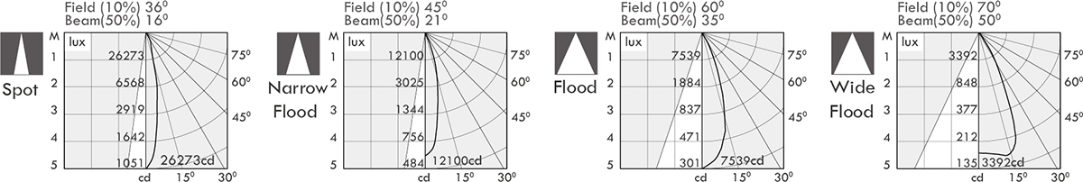 Luminaire flux (lm) Power consumption (w) LED drive (w) cd / 16o 21o 35o 50o