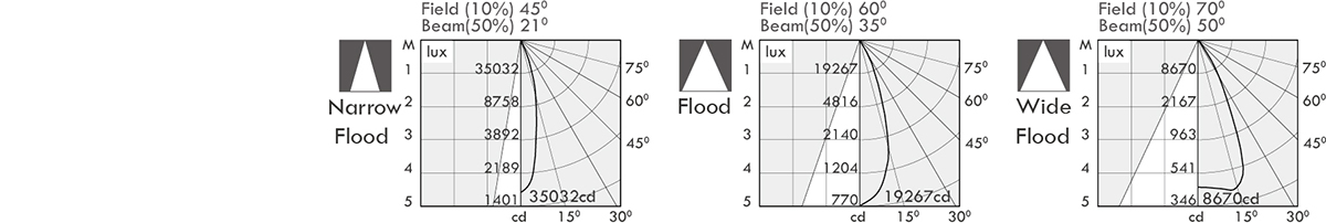 | Luminaire flux (lm) | Power consumption (w) | LED drive (w) | cd / 21o | 35o | 50o |
