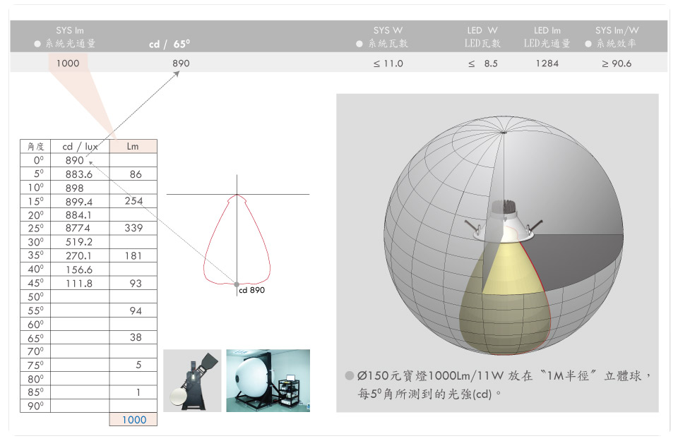 不斷以最新、更高效率的光源,搭配更低瓦數的驅動器,維持產品亮度同時滿足市場對節能、低耗電的期望。以「系統光通量」作為設計之基礎,捨棄傳統照明直稱耗電瓦數的做法,避免誤判各家LED發光效率。